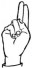 На ћирилици написано ЛАБУДА ПОСТОЛОВИЋ састоји се из 16 слова [?]. Исписано ћириличном једноручном азбуком за глувонеме: